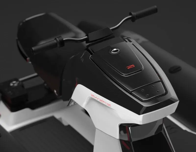 - Управление: Руль в стиле спортивного мотоцикла с поворотной ручкой газа («грипкой»), кнопкой реверса и аварийного отключения. Вся информация выводится на встроенный цифровой дисплей с фирменным интерфейсом Awake.